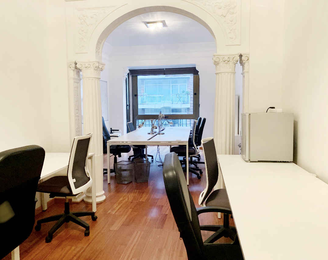 Están equipados con mobiliario ergonómico, mucha luz natural y una decoración minimalista moderna, ideal para trabajar cómodamente o recibir clientes.